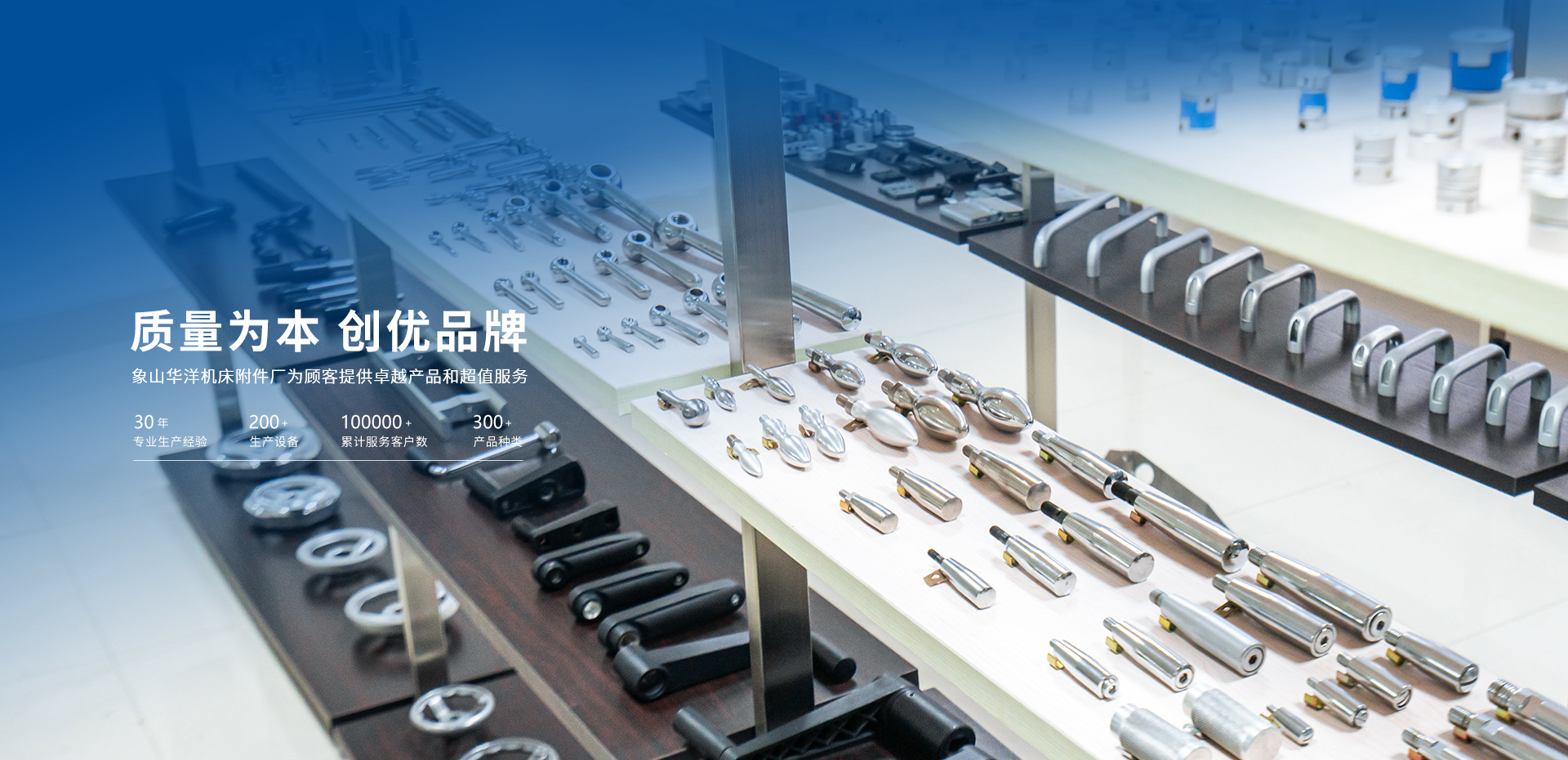 象山华洋机床附件厂创立于1993年,位于浙江省象山县。专注于生产优质“华洋”系列机床附件,“华洋”系列机床附件目前拥有300余款品种,上千种规格尺寸,以其先进的工艺,优良的品质,齐全的规格,合理的价格,在国内外享有盛誉。主要产品有:手轮、手柄、把手、拉手等机床操作件;油标、油杯、润滑泵、分配器;万向节、联轴器;位置显示器、脚杯、刻度环、合页、工作灯、冷却管等机床附件系列产品。产品均采用国家及行业标准,质量可靠,深得国内外机床设备生产厂家,经销商,贸易商及机床行业设计师等用户的肯定和信赖。销售网络覆盖全国各地,且有相当部分产品销往德国、美国、日本、丹麦、韩国、台湾等地。